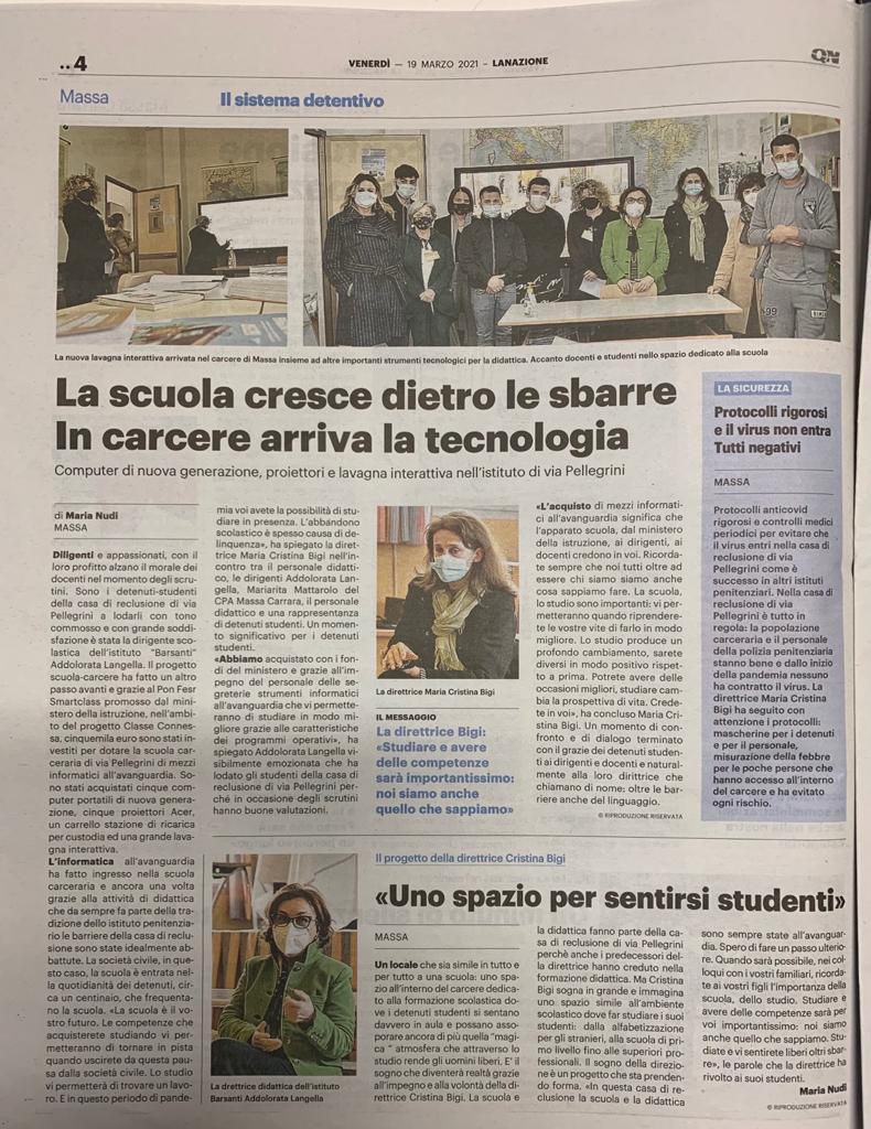 In carcere arriva la tecnologia a supportare l'attività didattica ed educativa che viene svolta nella sede di Massa. Grazie al progetto PON Smart Class l'aula didattica della sede della CdR ora dispone di uno schermo interattivo di ultima generazione e di computer portatili. L'inaugurazione è avvenuta lo scorso 19 marzo.